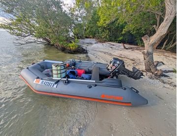 The KM300D is a full-size inflatable with a classic hull shape and a large cockpit that can accommodate passengers and gear comfortably for extended time on the water.