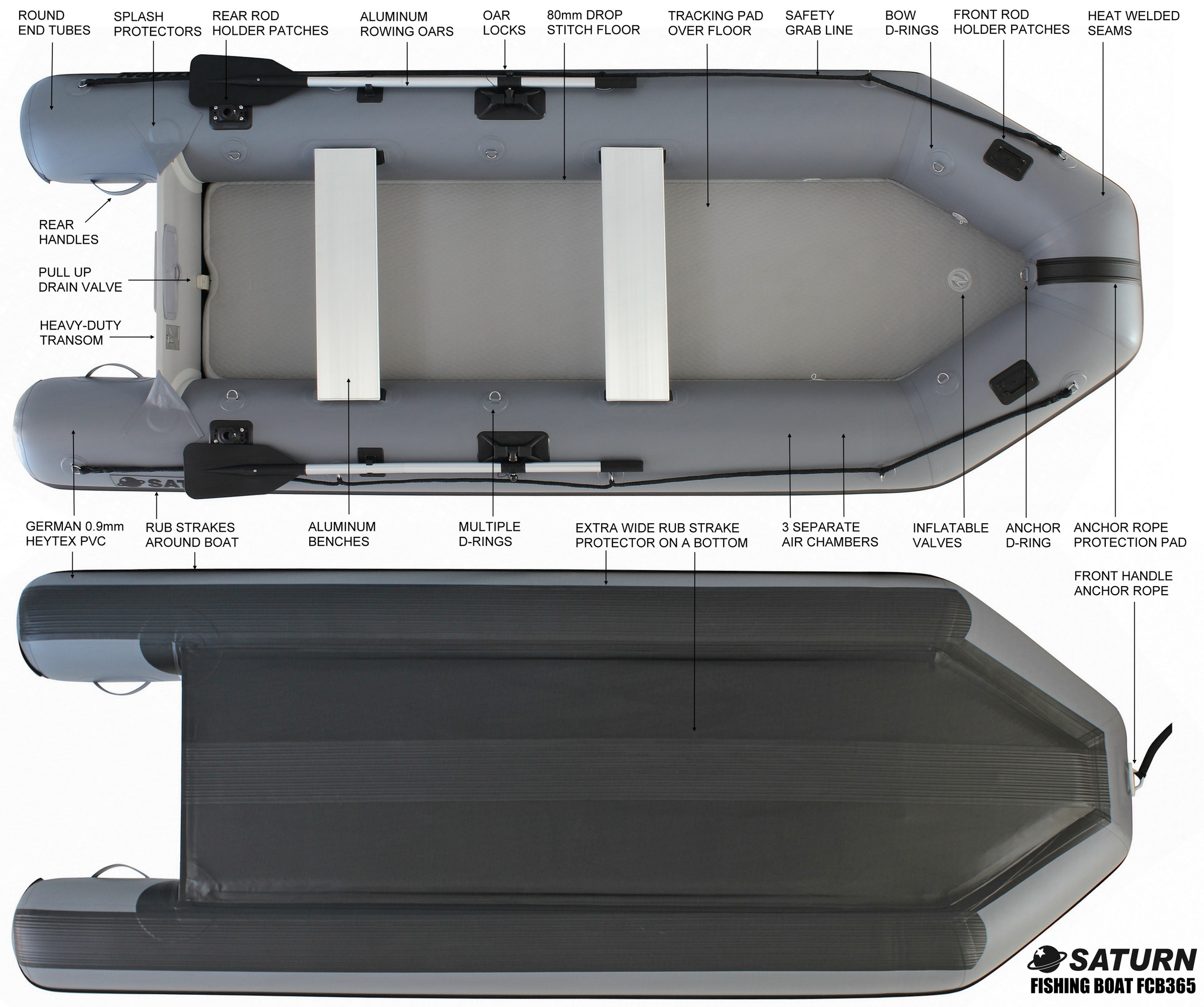SATURN INFLATABLE BOATS FCB365 FEATURES: