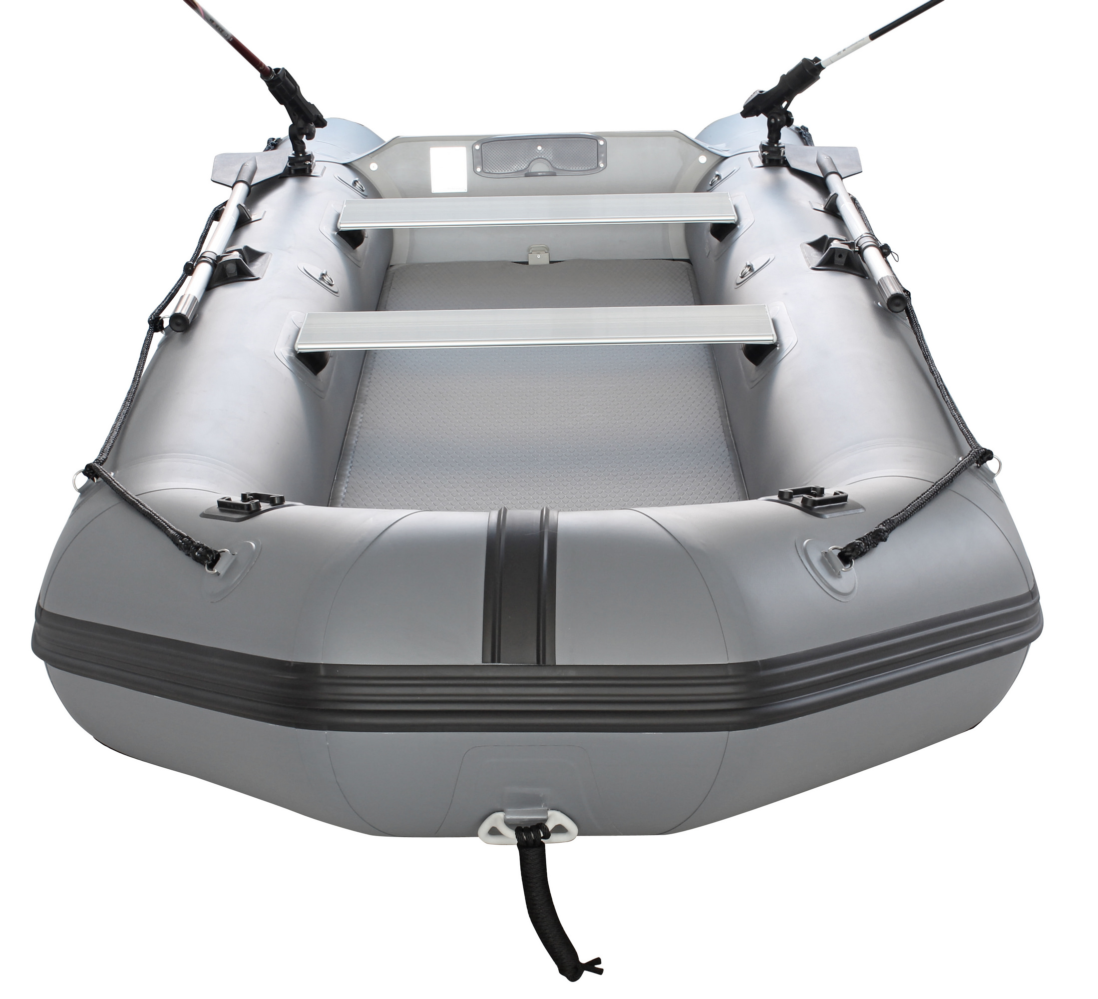 The FCB365 takes the proven Saturn CB365 platform and upgrades it for fishing use. You get two universal accessory mounts ready for optional Scotty or Railblaza rod holders, cup holders, or fish-finder setups. The inflatable air deck includes a sturdy non-slip pad for confident footing, and a wide protective rub strake along the bottom adds extra toughness when launching from rocky shores or shallow rivers.