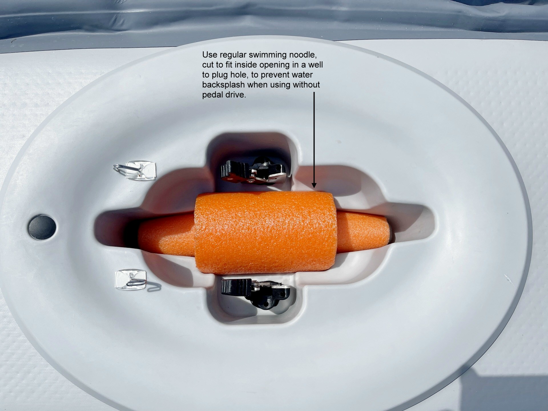 This kayak also features a removable rotomolded pedal drive well, making transport and storage easier. For smooth installation and removal, simply use a bit of soapy water or shampoo—no forcing required, since the snug fit is designed to lock securely into the drop-stitch floor.