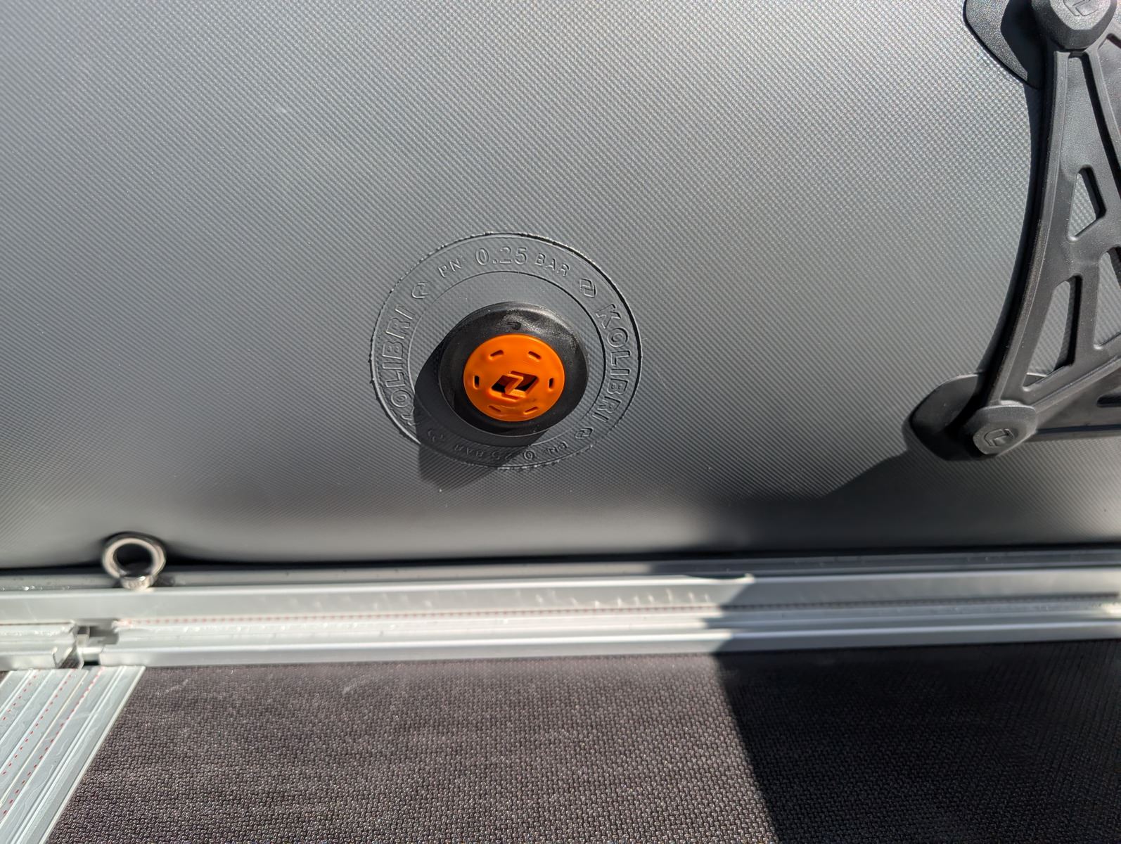 A sturdy marine plywood transom with molded holders keeps your motor securely mounted, while a built-in overpressure valve ensures the boat remains protected from pressure build-up on hot days.