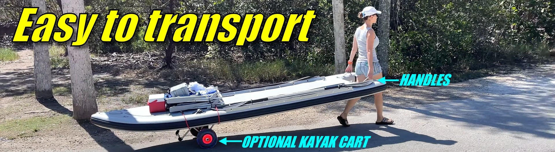 Transport is equally convenient. Attach an optional kayak cart to the front of the board, grab the rear tube handles, and pull the loaded XFSUP380 straight from your vehicle to the water. Dual air valves make deflation quicker and easier as well.