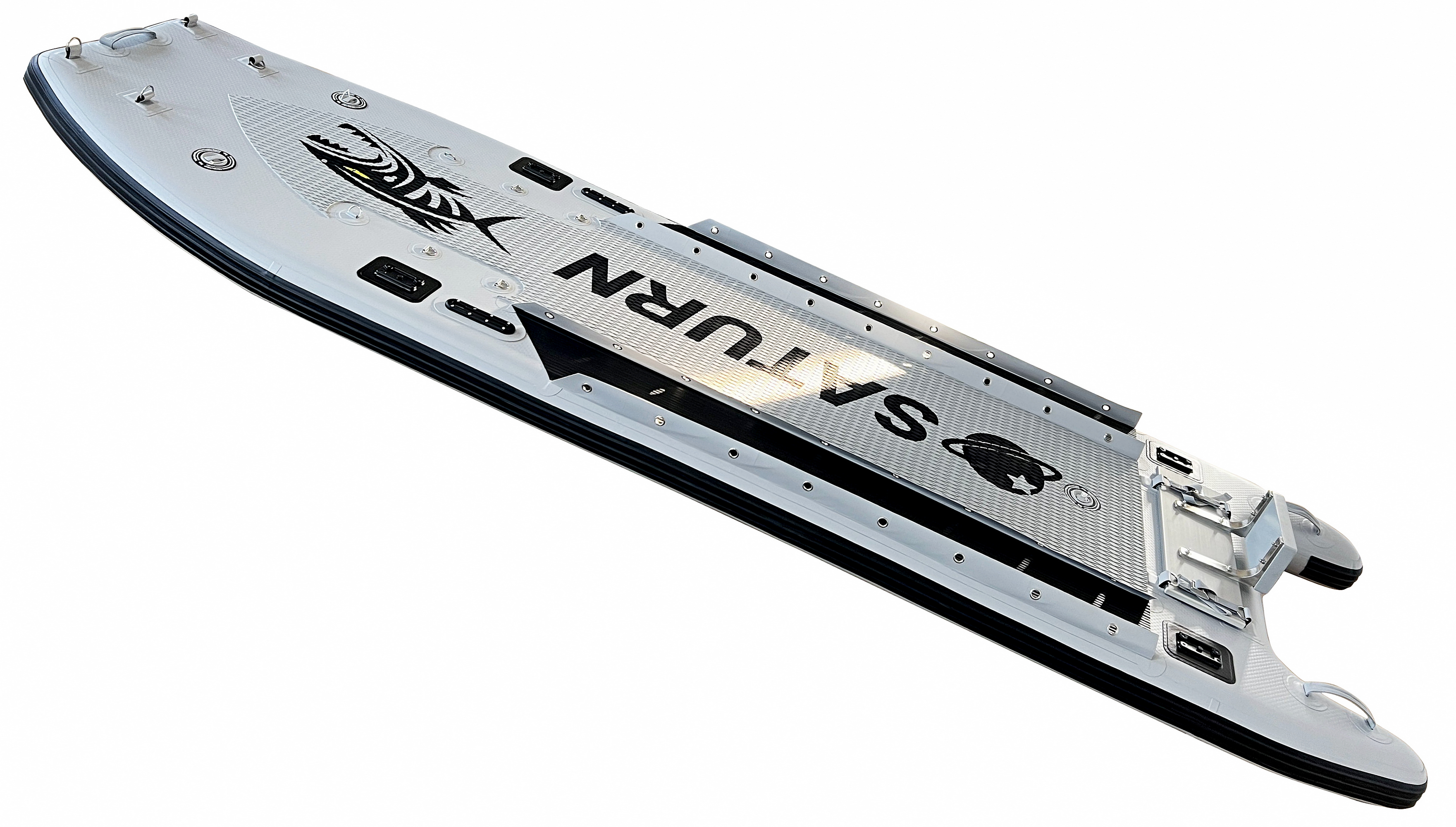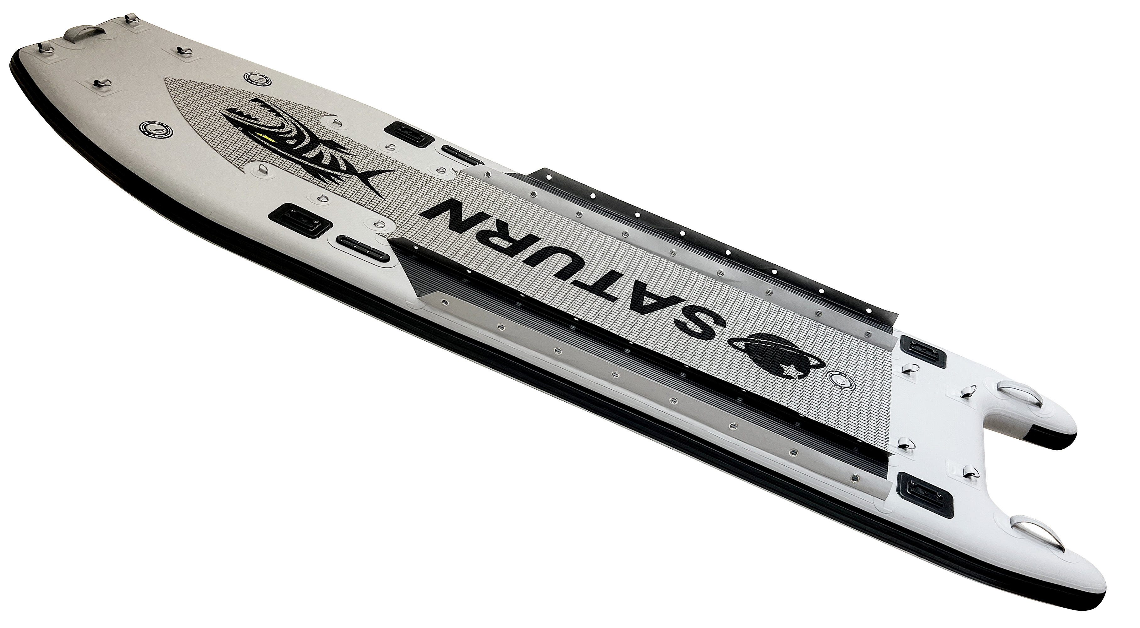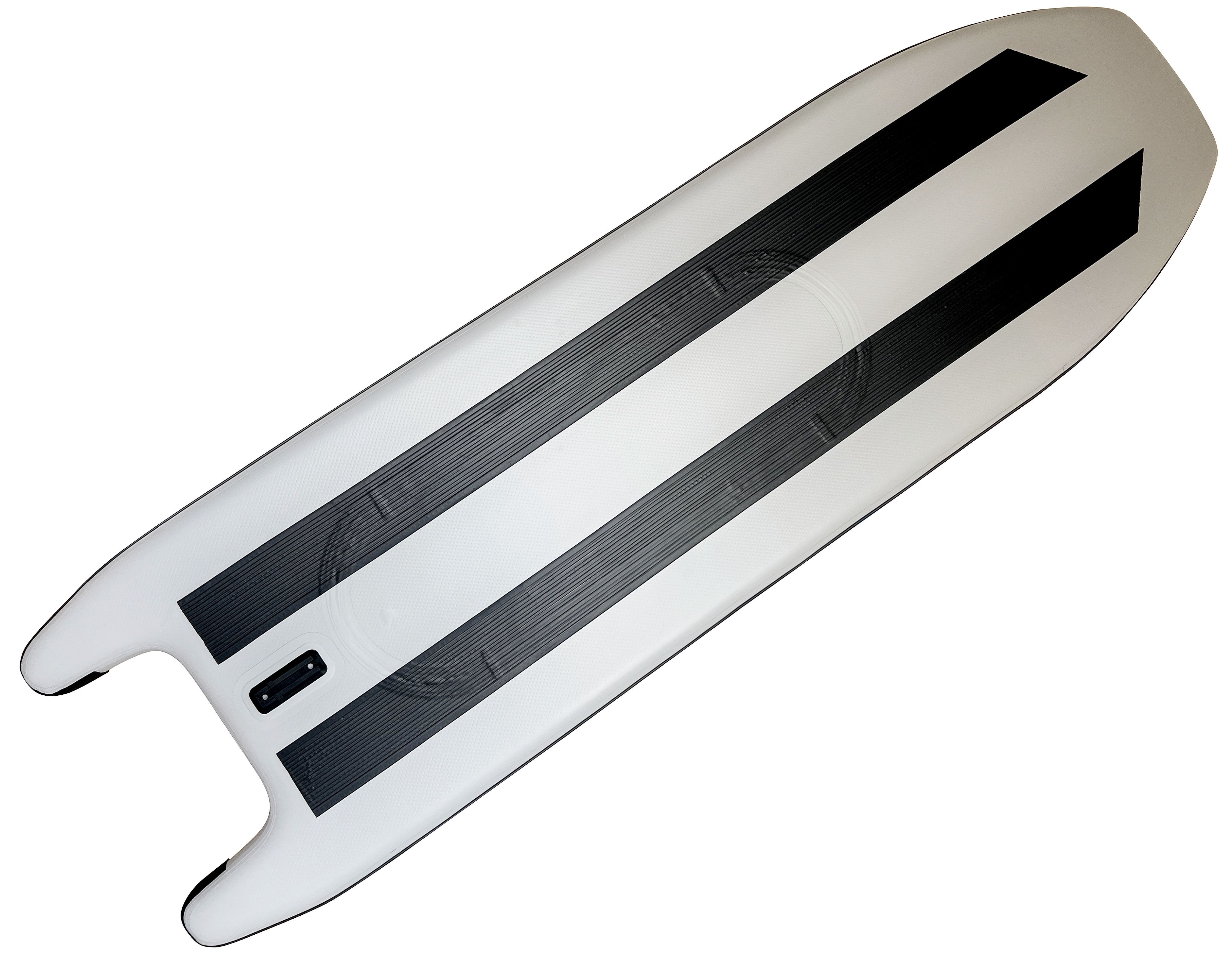 • Inflatable motor-boat-inspired shape for superior performance with small motors