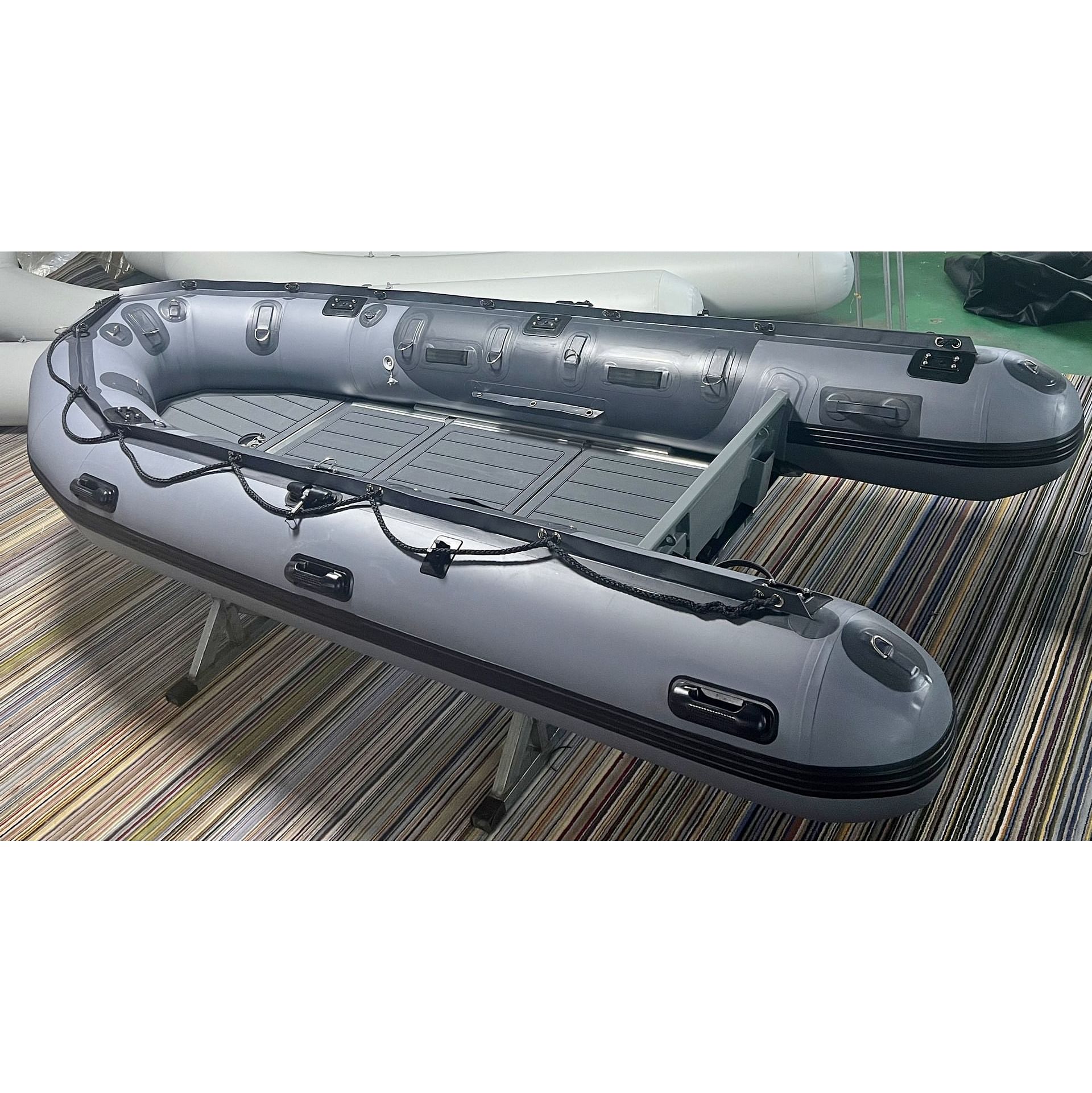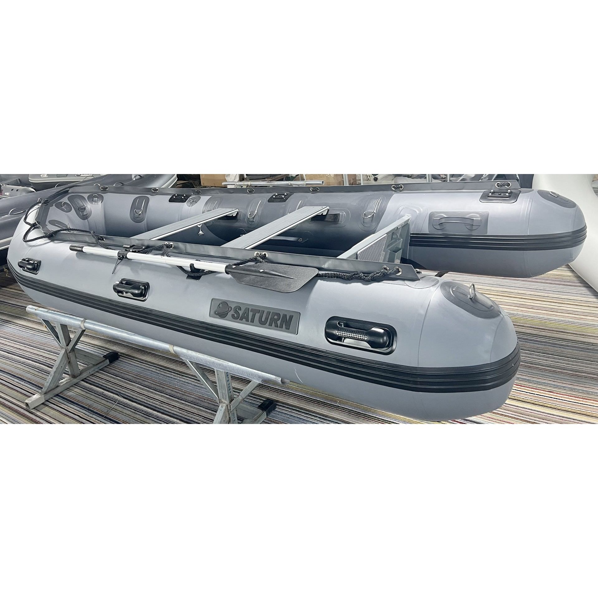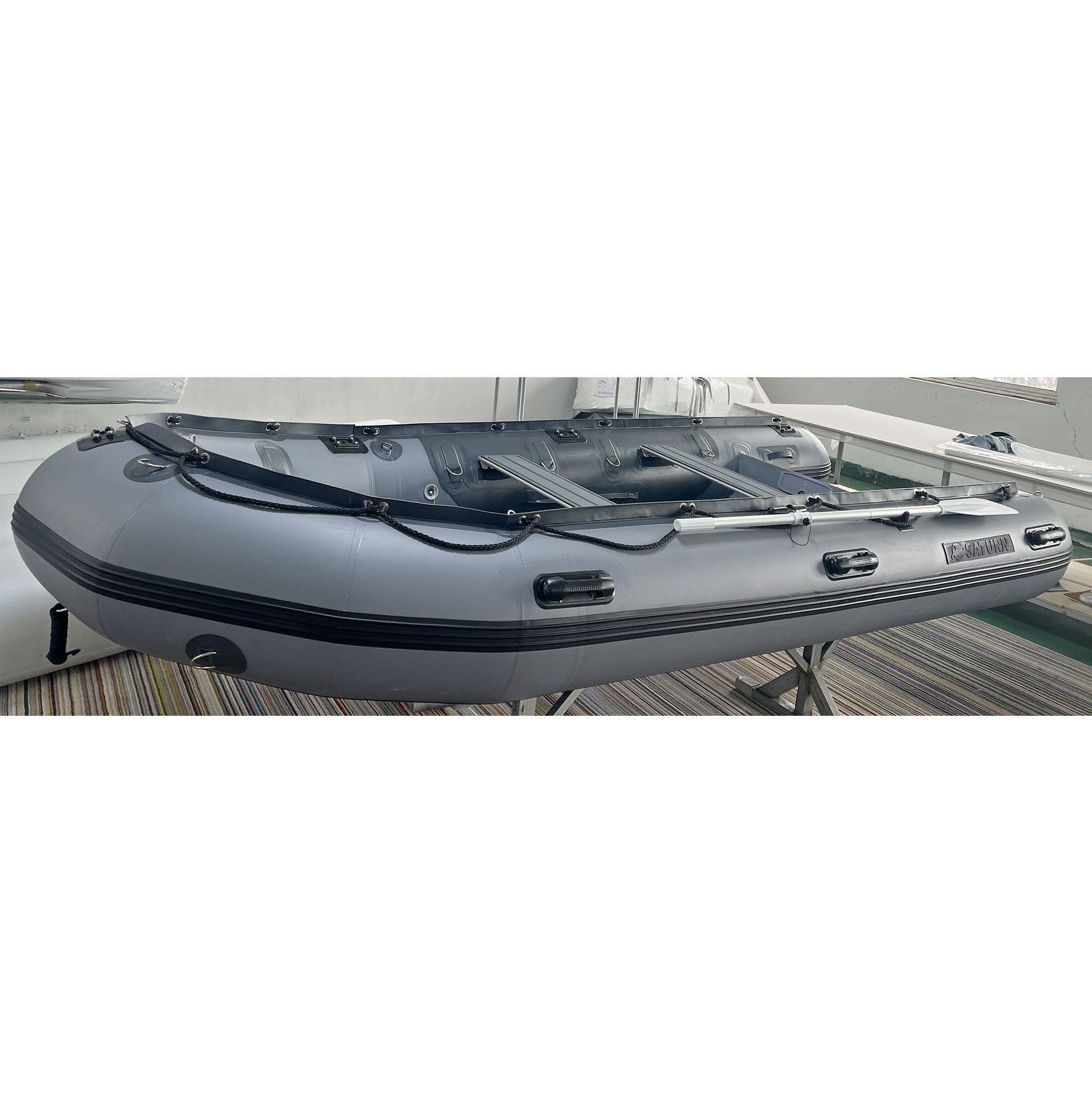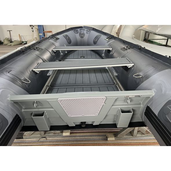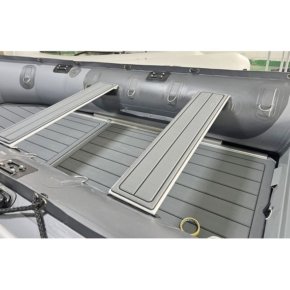 New Heavy-Duty Saturn HD385 inflatable boats come with a sectional heavy-duty aluminum floor. Floor installation steps are here. Please note that tubes and keel must be as hard as rock when inflated to avoid cracking to the floor.