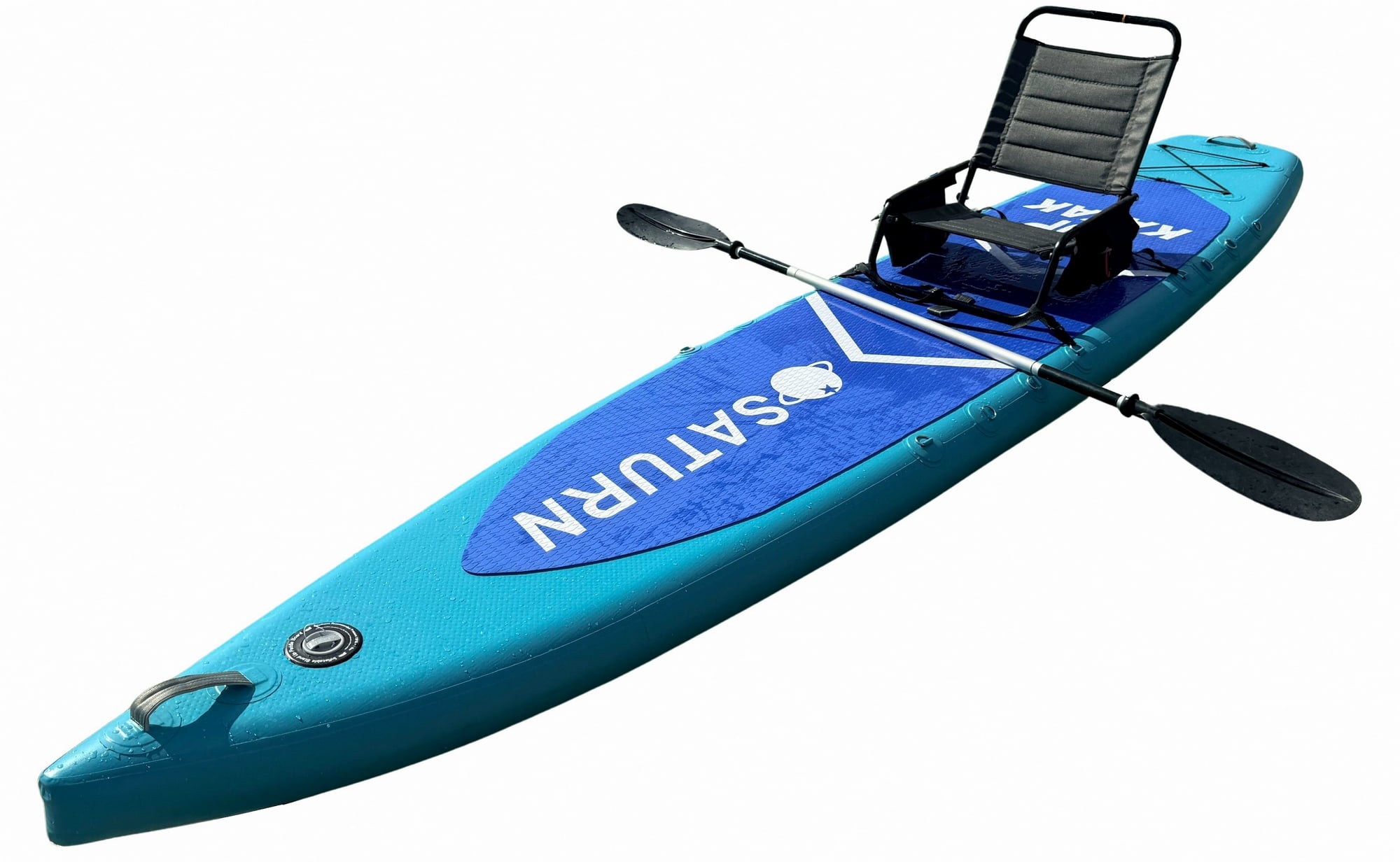 Experience the freedom of both stand-up paddle boarding and kayaking in one versatile craft! The new Saturn 13.5’ Hybrid SUP/Kayak V3.0 is designed for 1 or 2 people and easily converts from a high-performance racing SUP to a comfortable sit-on-top kayak — giving you the best of both worlds.