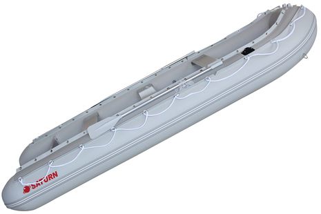 Continuing the legacy of Saturn FB series vessels, the FKB430 features a set of two grommeted PVC strips strategically positioned off-center of the tubes, creating ample storage space for fishing rods, bags, and gear atop the tubes. The area between splash guards is reinforced with an extra-wide rub strake to prevent accidental damage to the boat's tubes.