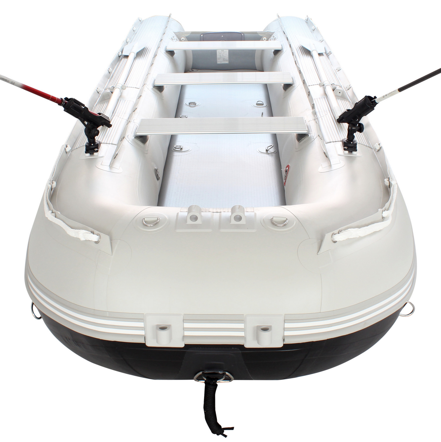 For improved convenience and reduced weight, the FKB430 boasts a high-pressure air deck floor, delivering exceptional rigidity once fully inflated. This versatile floor can be customized with marine carpet, vinyl flooring, or foam yoga mats to protect against punctures or cuts, ensuring long-lasting performance.