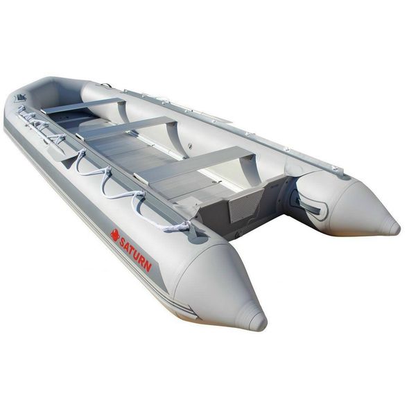 Saturn SD460 comes with heavy-duty sectional aluminum floor. Aluminum floor provides excellent platform for diving, fishing, working, snorkeling or pleasure cruising on a weekends with bunch of friends. While it does take time to assemble aluminum floor, compare to quick deployment of popular air deck floor, hard floor has its benefits - it is strong, corrosion resistant, support heavier weights, will not get punctured or cut, as air floor might.