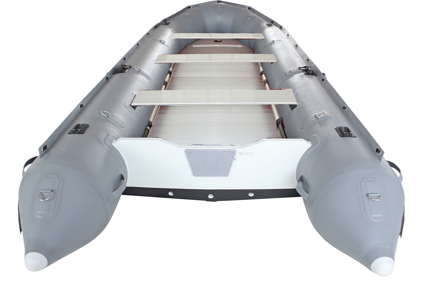 Upgraded 18' SD518 inflatable motor boats come equipped with with a sectional heavy-duty aluminum floor. The bow section is made of a marine grade plywood floor covered with a gray resin. Aluminum floor installation steps are here. Please see important warnings about aluminum floor installation at bottom of this page.