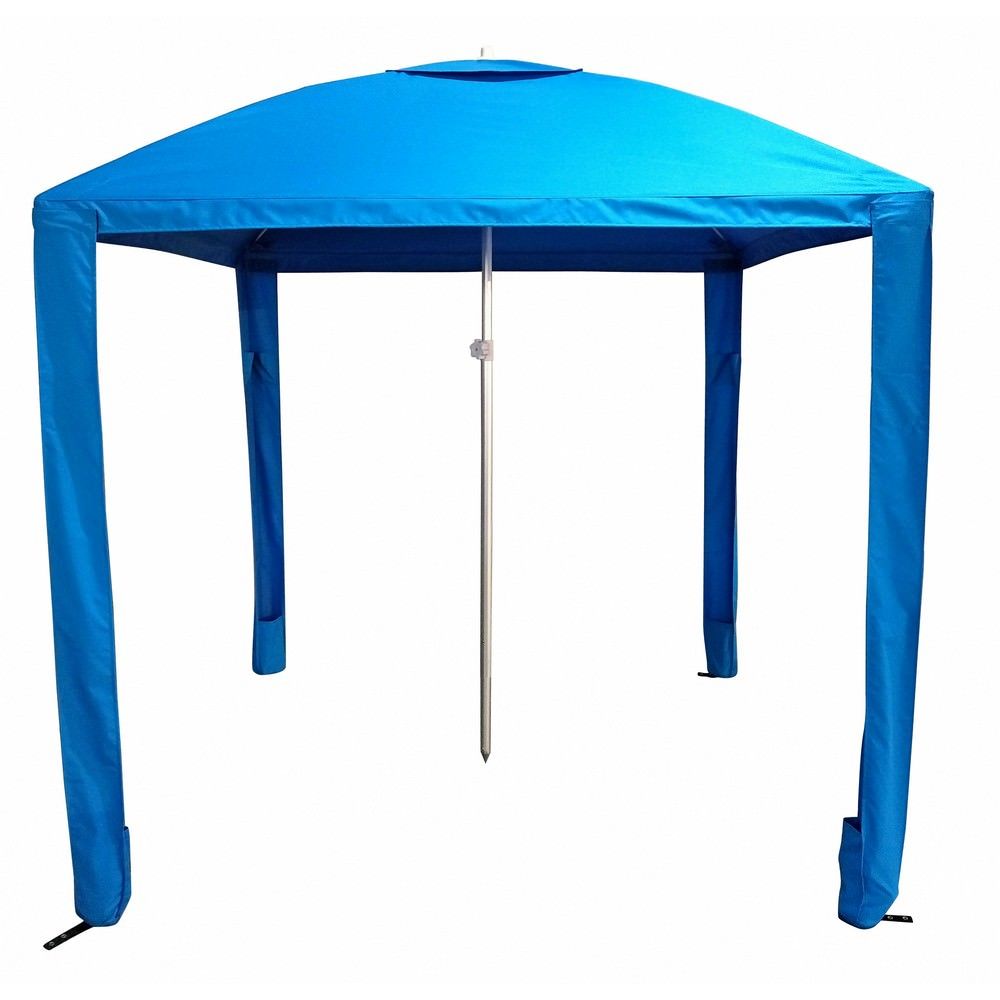 Unique design, commercial-grade, square shaped beach umbrella with multitude of uses. Can be used as a beach umbrella, beach cabana, picnic or vendor tent, or as a boat sun shade.