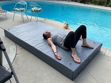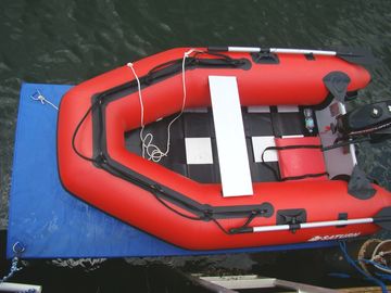 This is a new product we have invented with a purpose to provide affordable docking solution for owners of kayaks, canoes, KaBoats, small inflatable boats and other small and light watercrafts, as well as work float platform. New 2020 model made from thicker and heavier 1.5mm PVC dark gray fabric with non-skid surface.