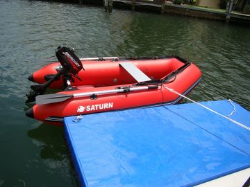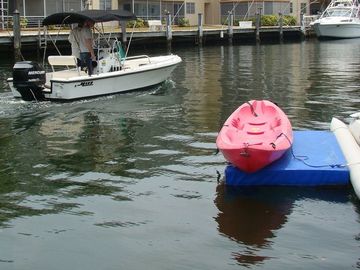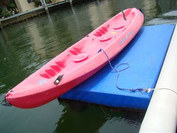 stationary object, or to join several docking platforms together to form larger size docks. For example, 1 dock will provide enough support for 1-person kayak or canoe or up to 9' long inflatable boat or 15' KaBoat. For longer boats and larger kayaks, customers might use 2 docks joined together via D-rings and rope. You can add as many dock platforms as you need.