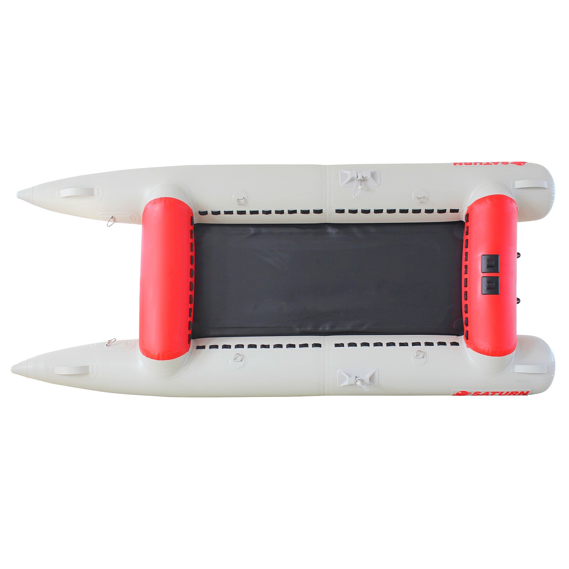 Crafted from heavy-duty 1.5mm PVC, the bottom of the catamaran ensures durability and reliability in any environment. While no additional floor is provided, a DIY-installed rectangular piece of plywood can enhance rigidity and provide a stable platform for standing or mounting a trolling motor.