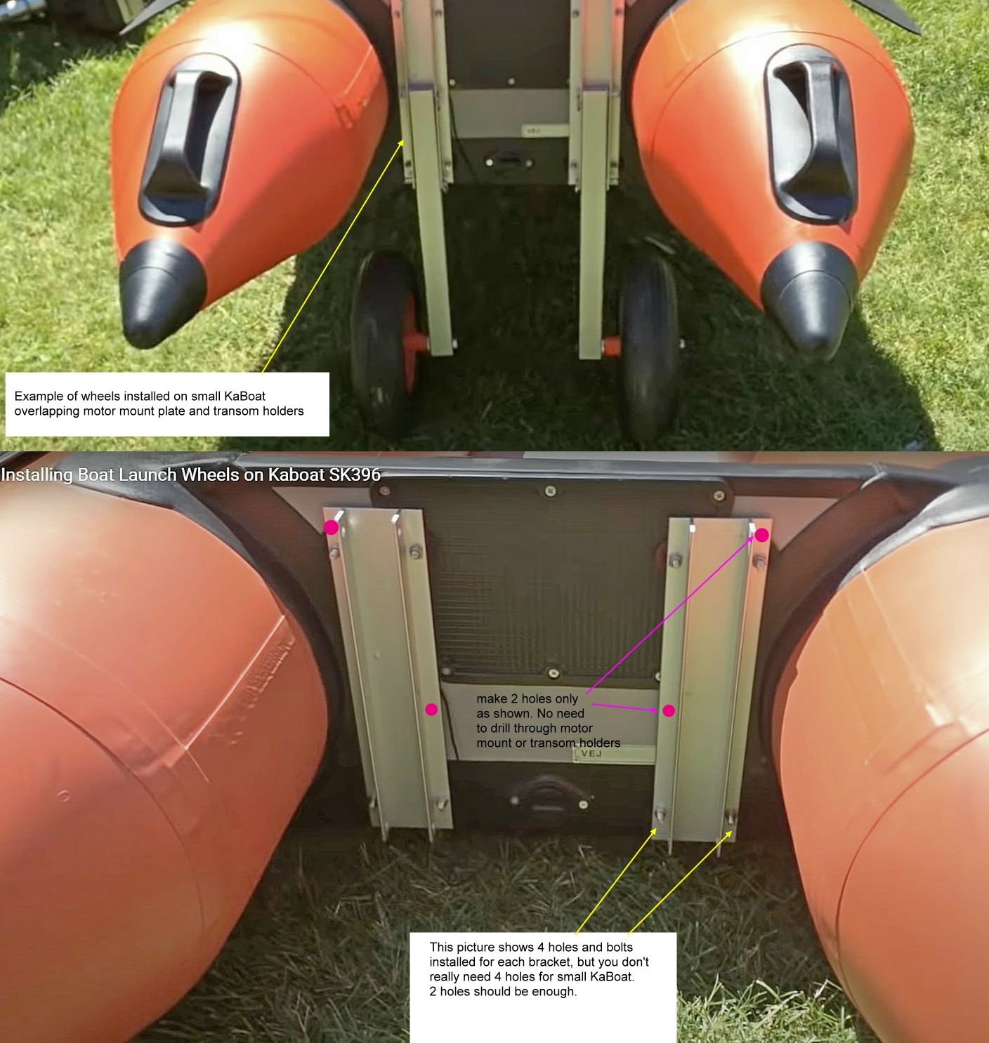 The video below, posted by a customer on YouTube, demonstrates a custom DIY modification of the dinghy wheel system we sell. Please note that we do not offer modified parts. If you are installing the system on narrow boats, such as KaBoats, non-standard DIY installation might be required. For more details, please refer to the Attachments tab.