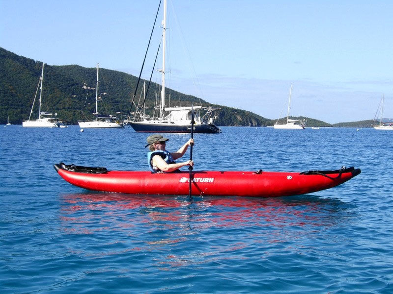 This kayak was surprisingly fast during our tests and was very stable. It was tested in mangrove jungles and around remote ocean islands of the Florida Keys. The RK396 inflatable kayak can be used on slow rivers, lakes, bays and calm oceans. However, this model was not designed for use on Class II or above river rapids, because it does not have self-bailing holes and comes with a slimmer 80mm air deck floor. Please visit our exclusive dealer Saturn Rafts for the whitewater version with self-bailers, re-enforced sides/bottom and 140mm air deck floor. The RK396 could be DIY converted for whitewater use, by cutting out dime-sized holes in the bottom and placing Styrofoam plates (sold at Home Depot) on or under the air floor, in order to raise it up, add more buoyancy and expel more water from the kayak's hull.