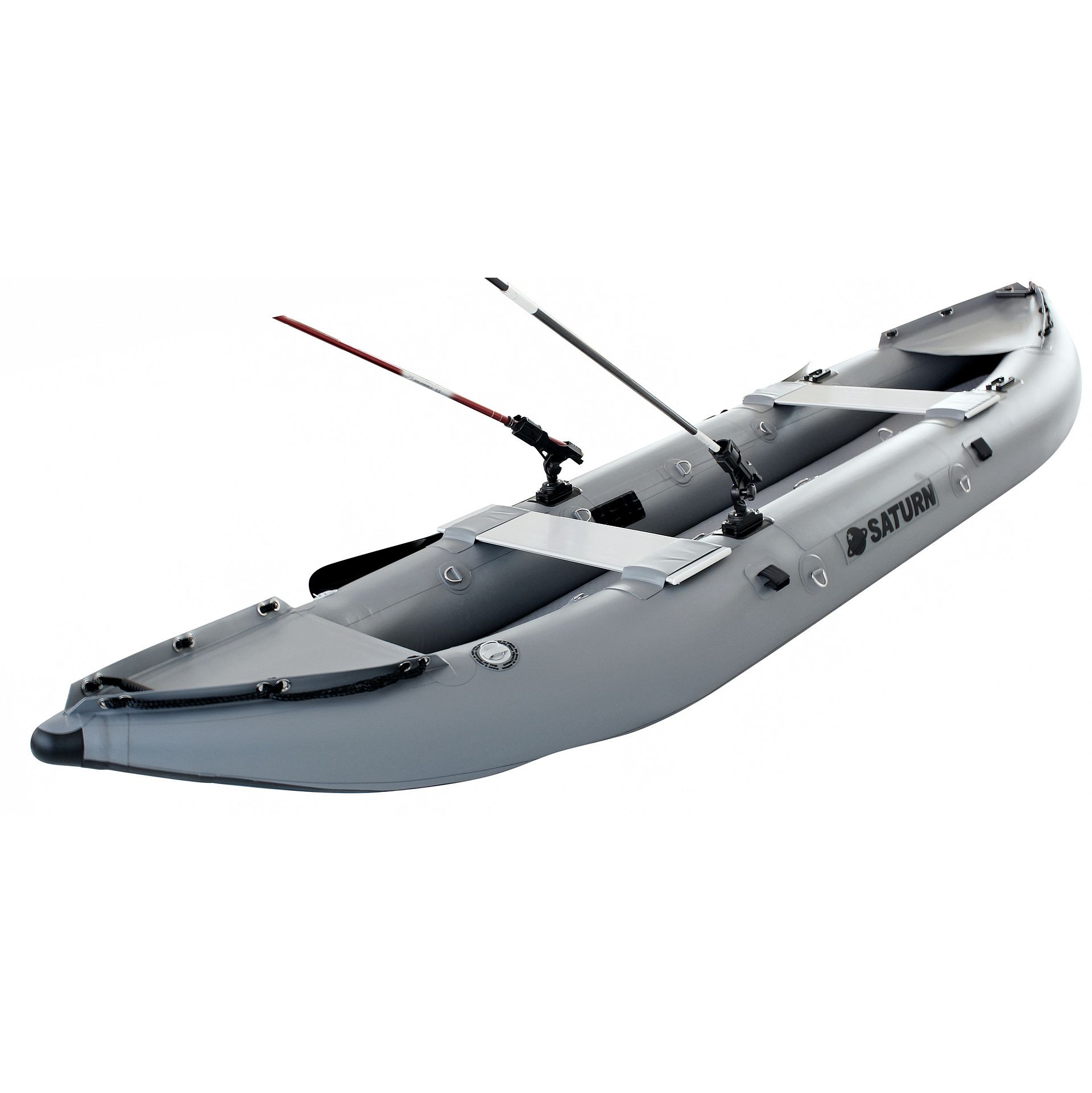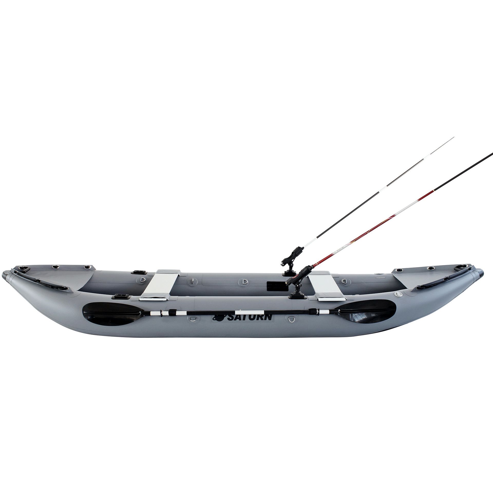 The Saturn FK396 fishing inflatable kayak combines precision engineering with user-friendly features, ensuring an effortless paddling experience. Its narrow profile and oversized high buoyancy tubes guarantee exceptional stability and maneuverability on lakes, slow rivers, oceans, or bays.