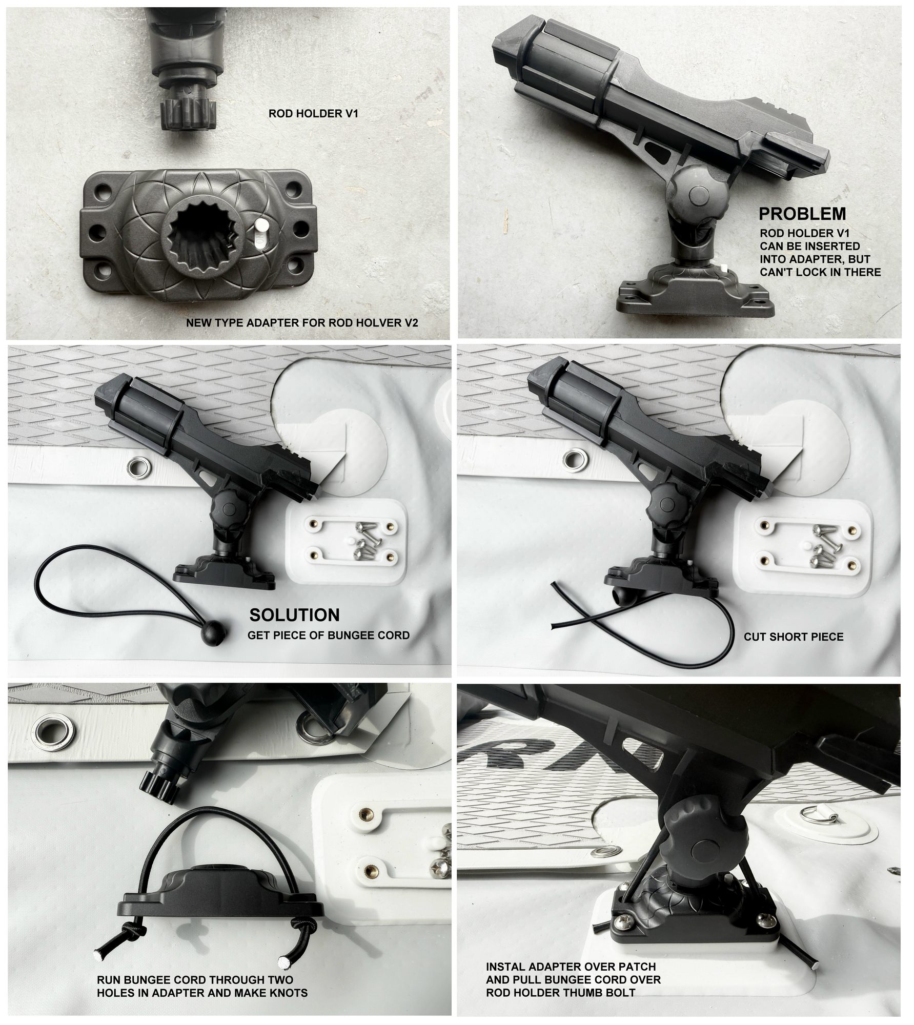 To ensure compatibility, please select the correct rod holder based on the type of rod holder patch adapter installed on your boat. V1 and v2 patch adapters have different overall appearance and different lock types. Please pay attention to that.
