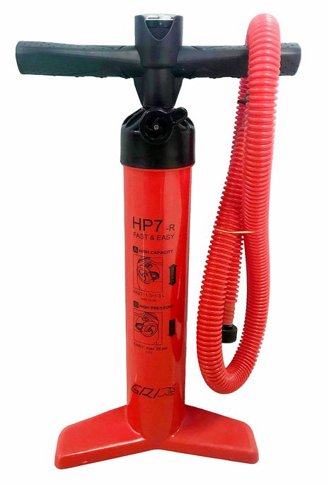The GRI HP7-R is a high-pressure hand pump designed for fast, easy, and efficient inflation of SUP boards and other drop-stitch inflatables. Built with durable materials and smooth pumping action, it quickly reaches the higher PSI levels required for rigid paddleboards.