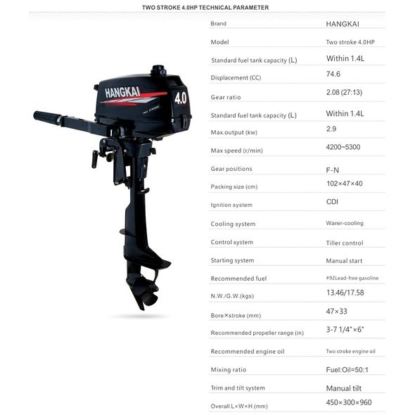 HANGKAI Outboard Motor, 4 HP 2-Stroke Outboard Motor.