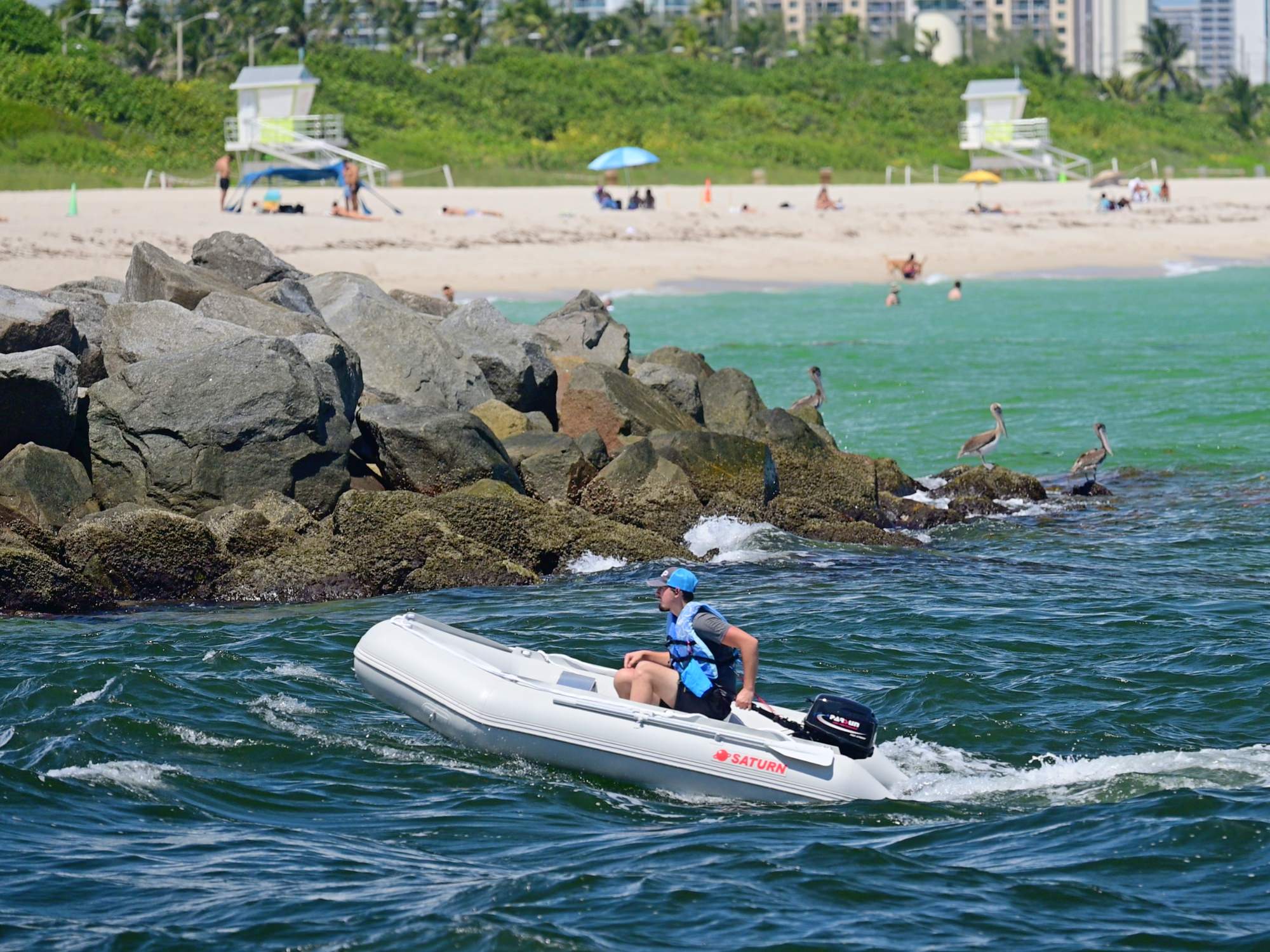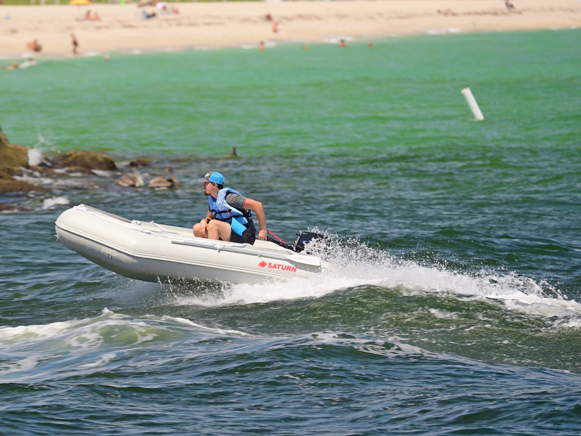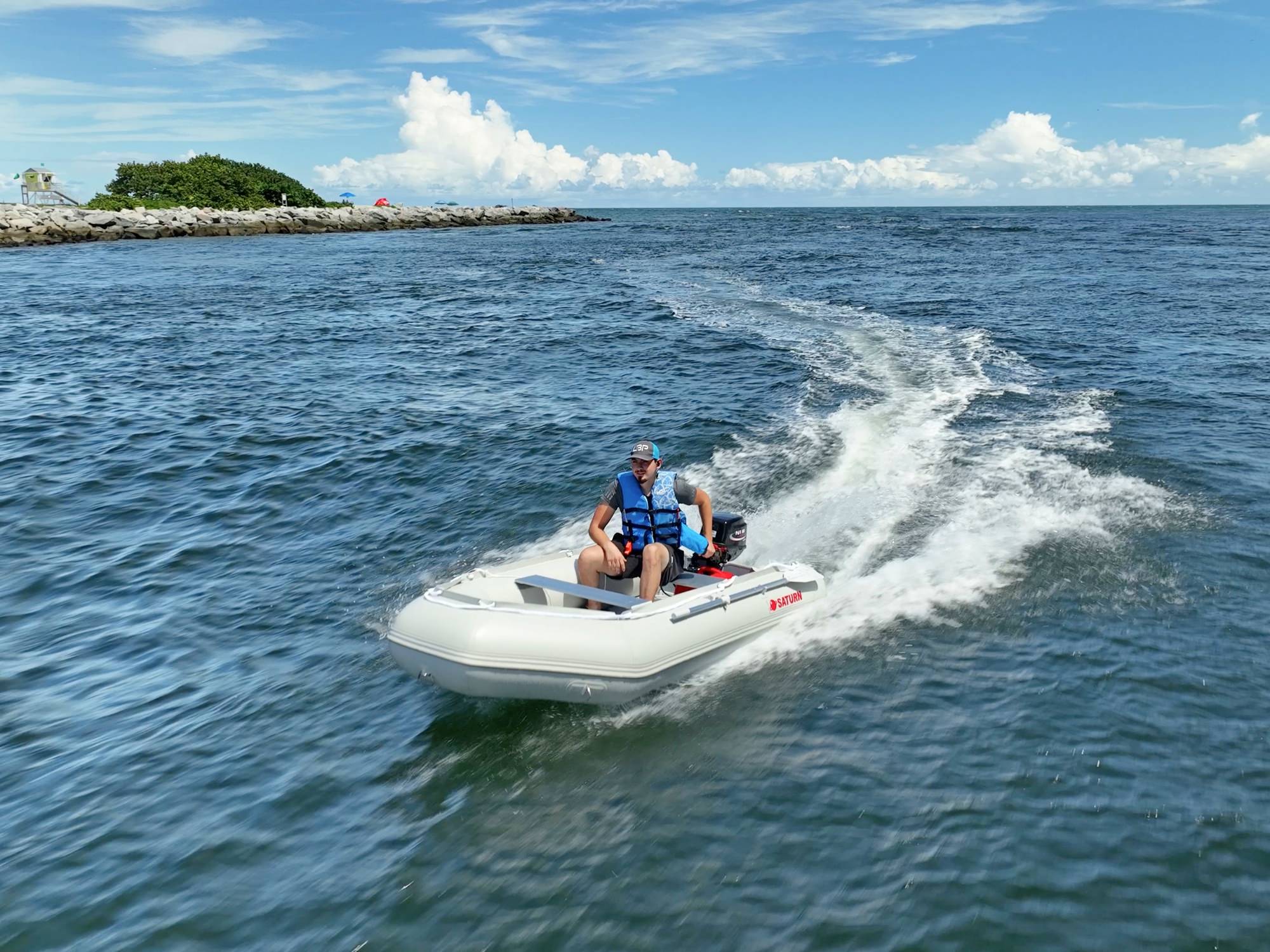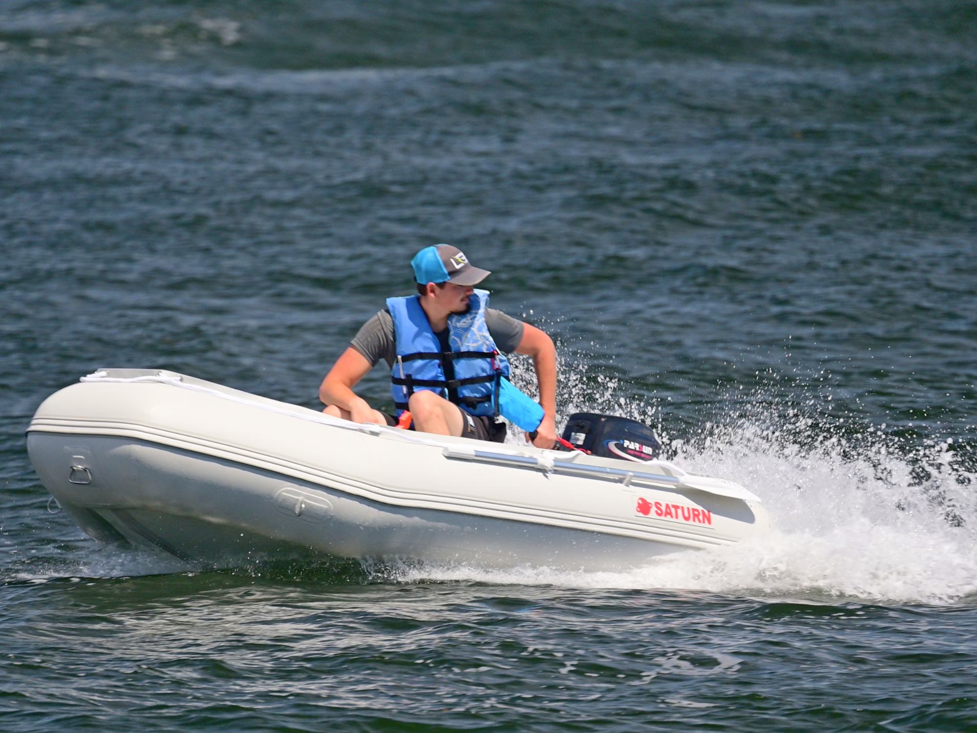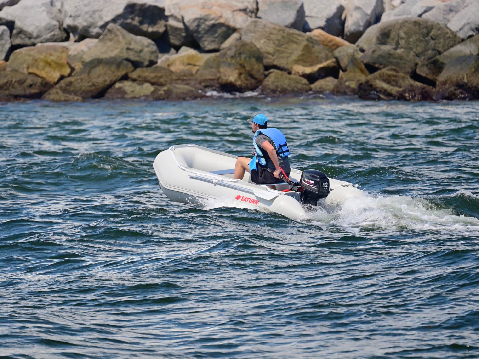 Elevate your boating experience with the new Saturn 11' Inflatable Boat, featuring all-around splash guards for added protection and comfort, ensuring a seamless journey on the water.
