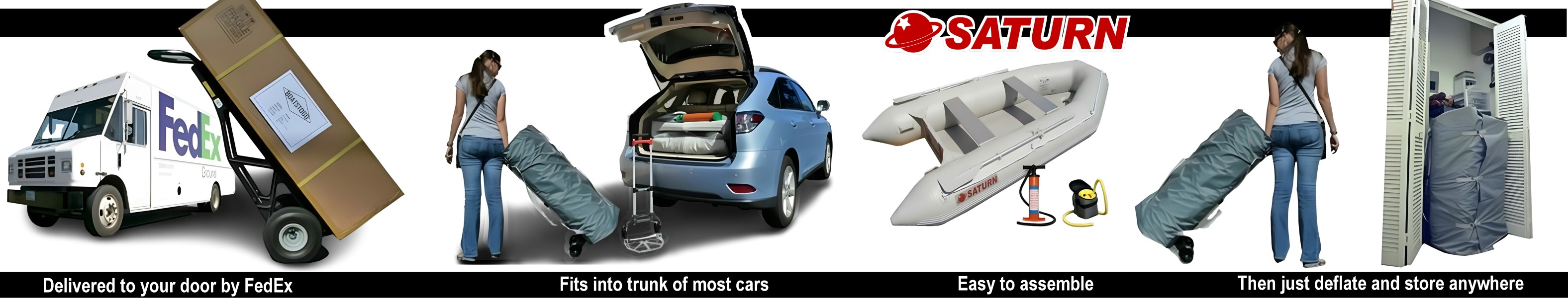 Forget about trailers, towing permits, or expensive vehicle upgrades. Saturn inflatable boats fit in your car trunk or SUV and can be launched by hand in minutes. That means you can take your boat anywhere—lake, river, or coast—without worrying about logistics or extra fees.