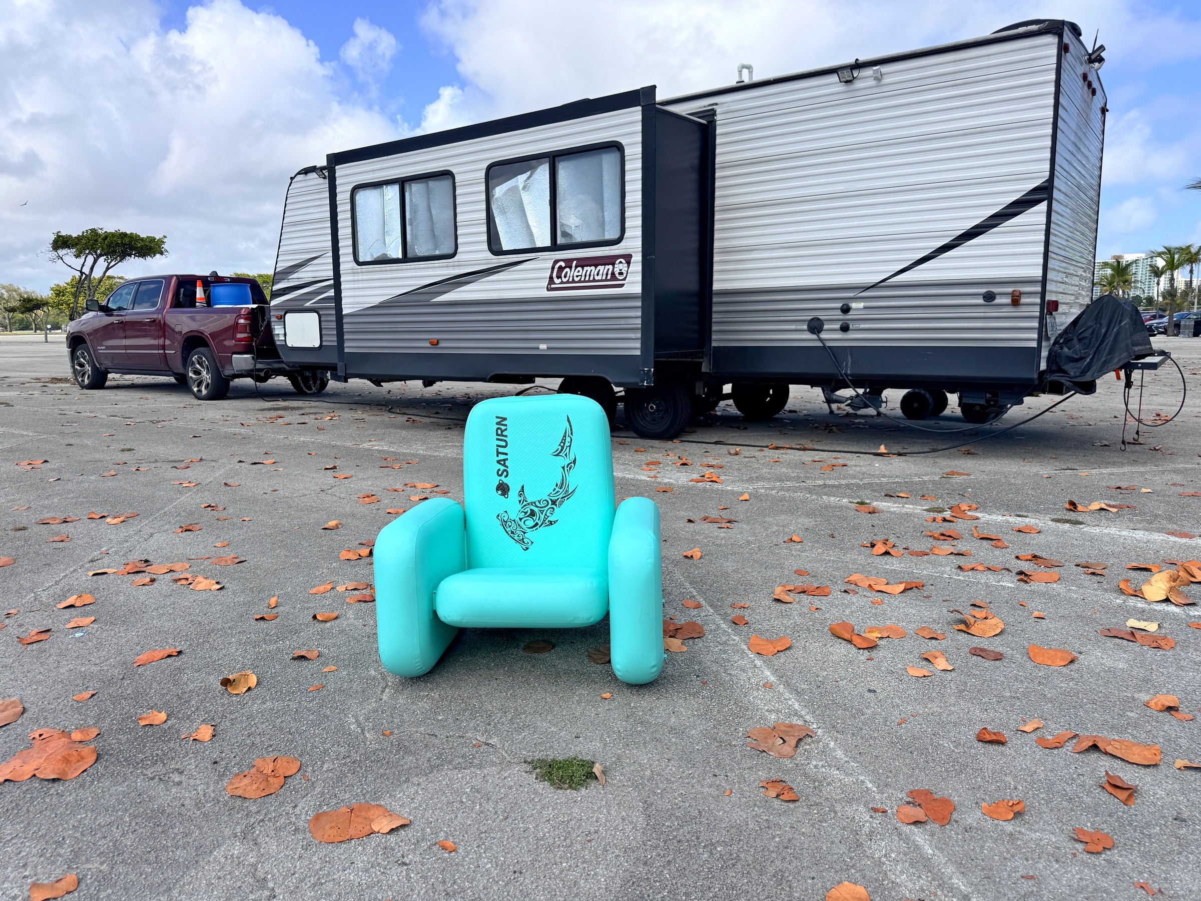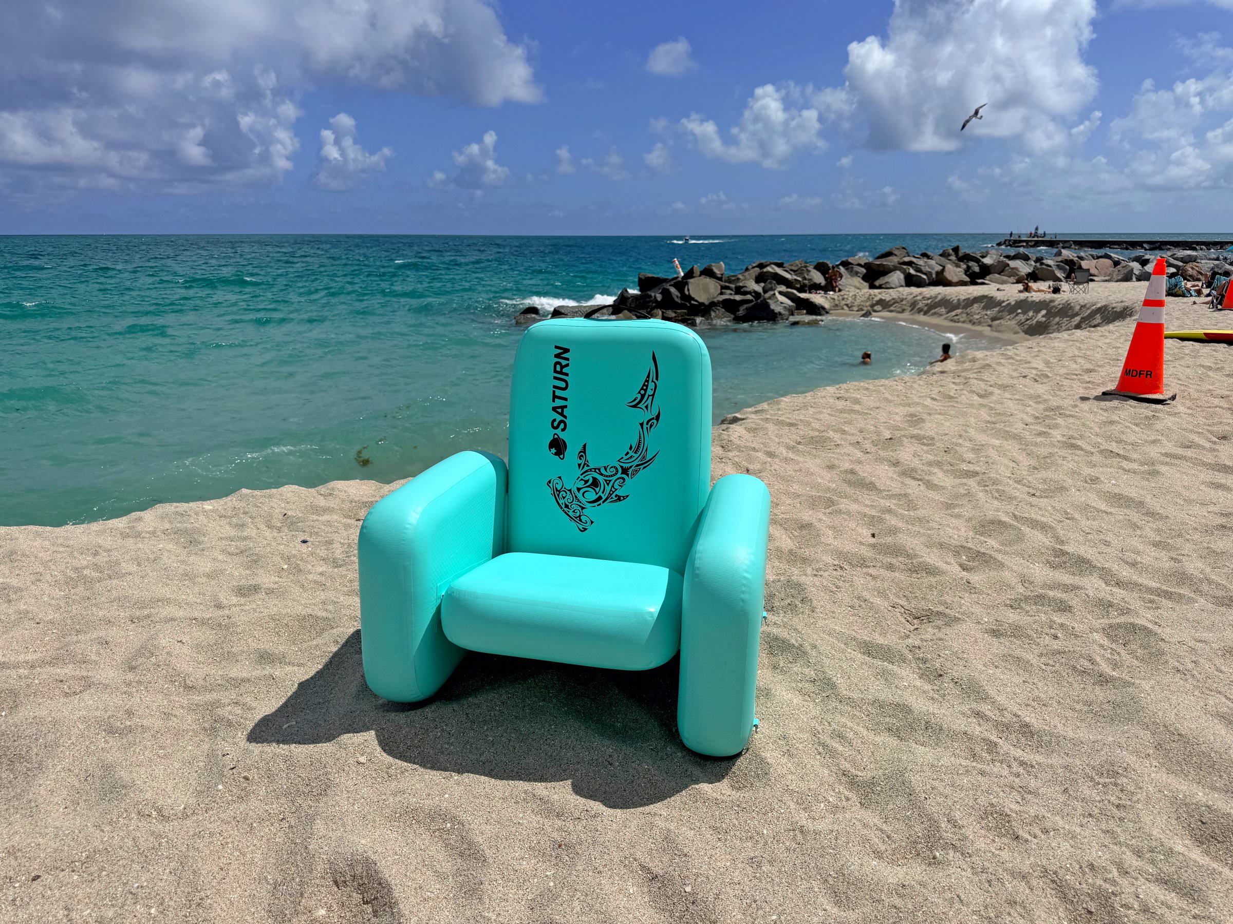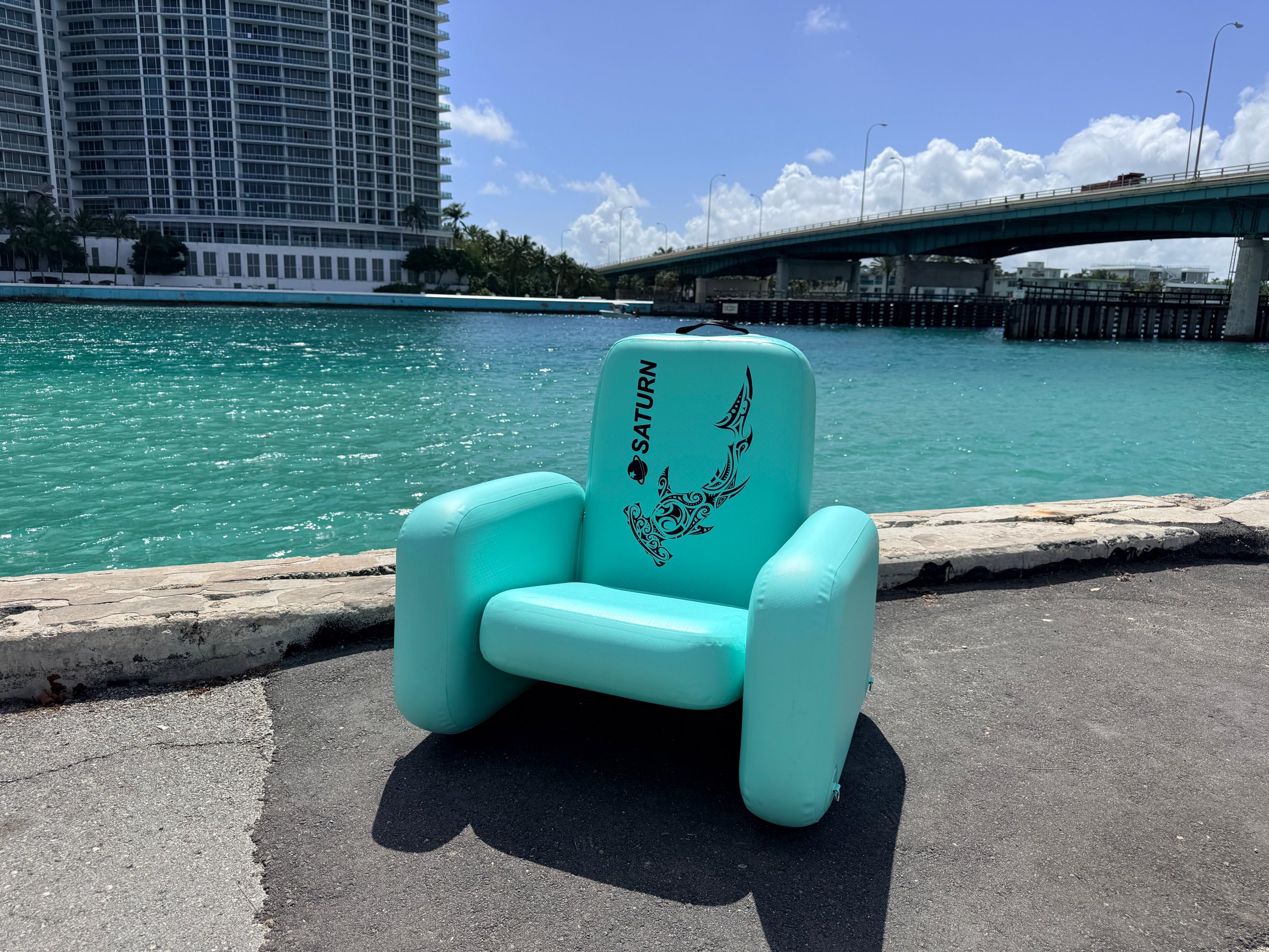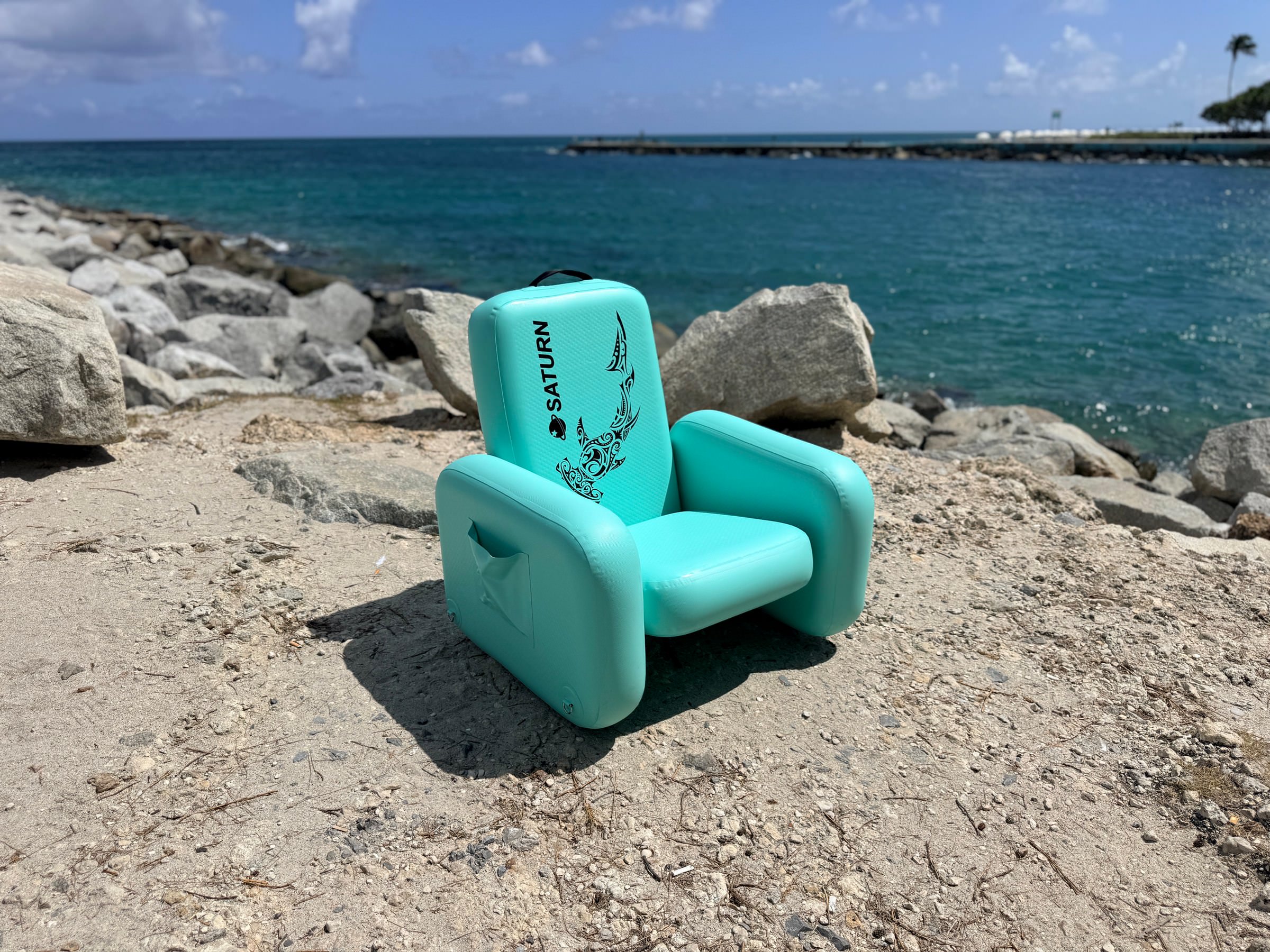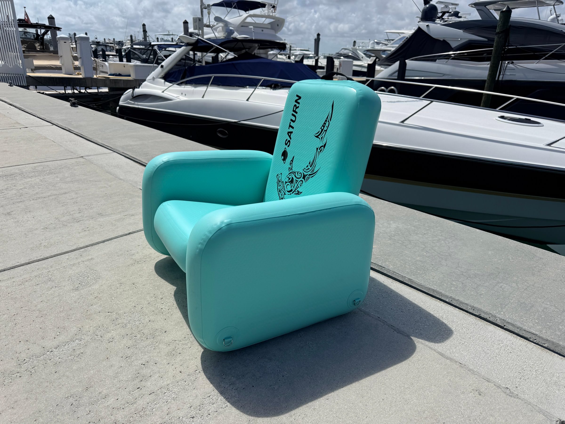 Inflatable Chair mounted on top of Saturn Skiff Boat.