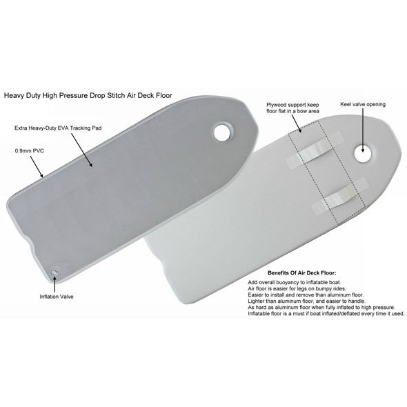 Presenting the 10' Extra Heavy-Duty Inflatable Boat FB300 featuring heat welded seams and a fiberglass-covered transom for enhanced durability. This versatile vessel comes equipped with an Air Deck Inflatable Floor, augmented by an additional layer of protection, included as standard. An optional Aluminum Floor is also available for added customization.