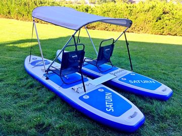 3-in-1: Inflatable Stand Up Paddle Boards, Sit-On-Top Kayaks, Motorized Catamaran for 2 people!