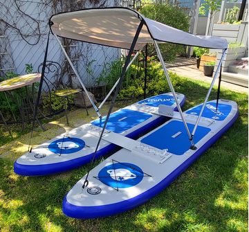- 2 aluminum boards with motor mount, to join both SUPs into catamaran.