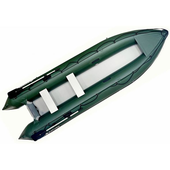 The Saturn 15' Heavy-Duty Inflatable KaBoat™ SK470XL features 20" diameter tubes for unmatched buoyancy and rigidity, plus a fiberglass-covered transom for extra strength. Built for toughness and versatility!
