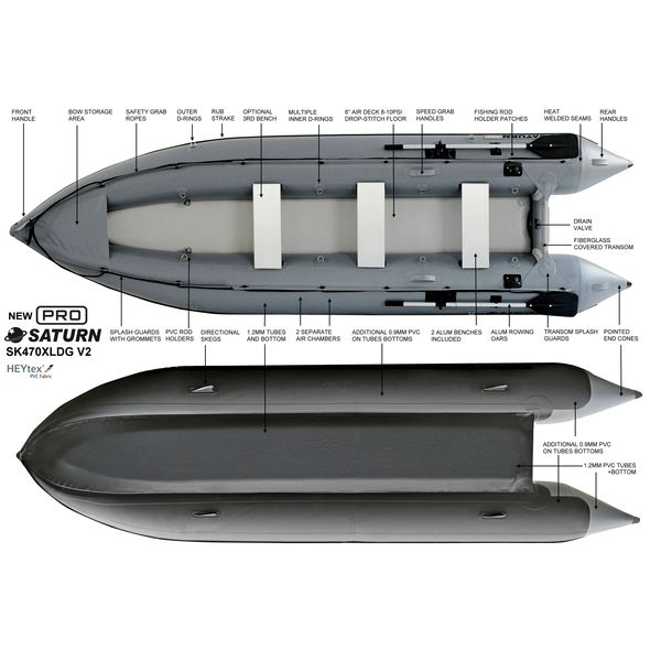 - Heavy-duty German Heytex/Mehler PVC used throughout, consistent with all SATURN boats and rafts.