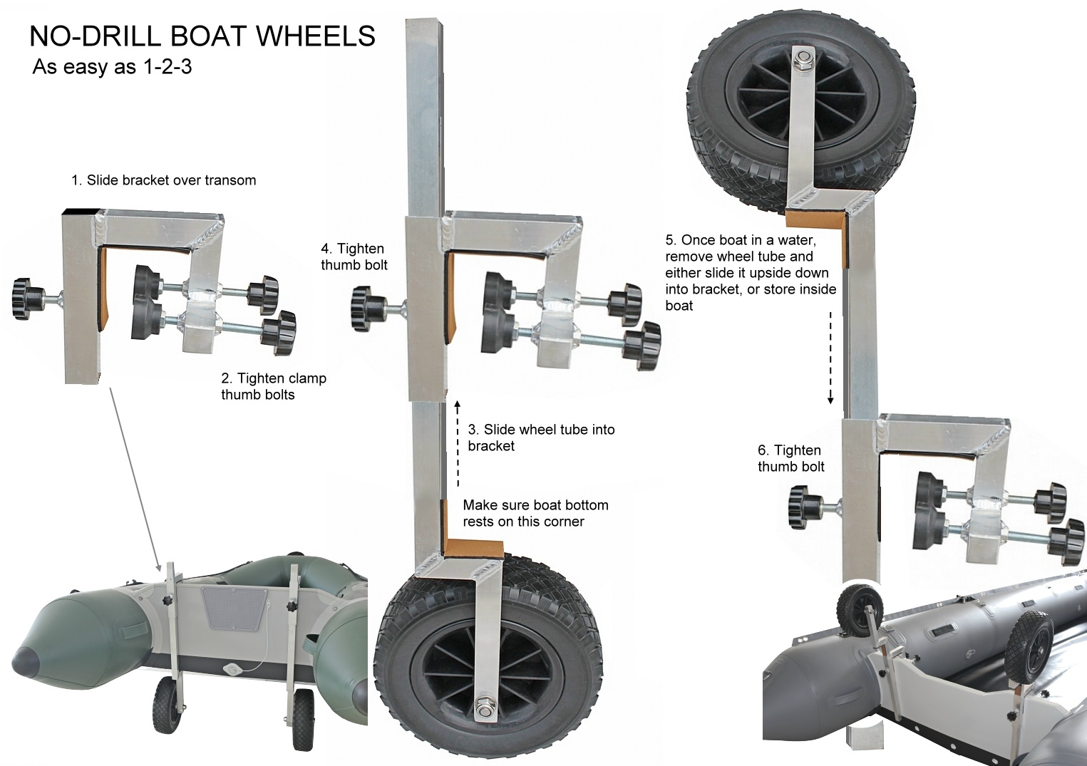 Say goodbye to drilling and hello to convenience with this detachable wheel system. Designed specifically for those who want to protect their boat's transom, these wheels attach easily with secure clamps – no drilling required!