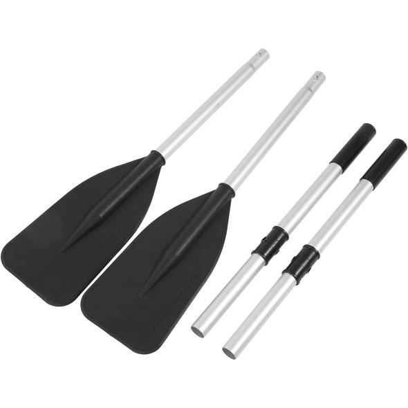 Upgrade or replace your existing oars with this reliable set of standard-size inflatable boat rowing oars. Designed to fit most inflatable boats, these oars feature black handle and blade, as shown on listing pictures.