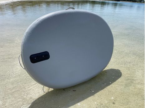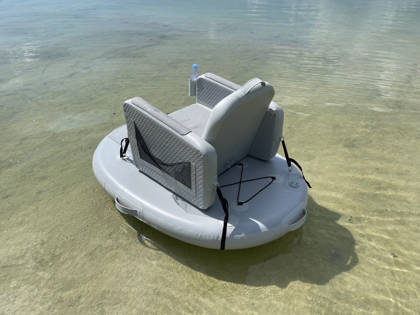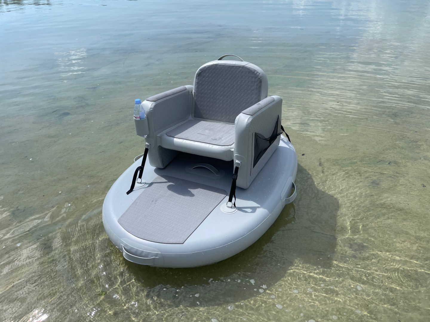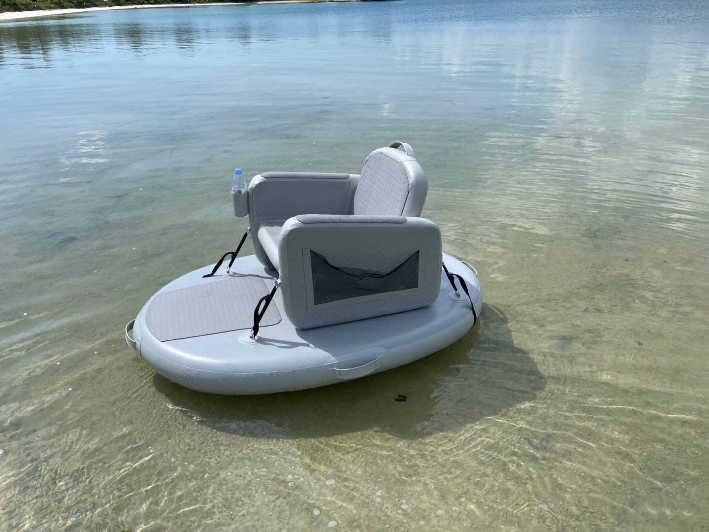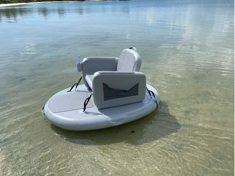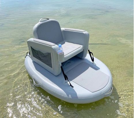 Prototype of new product, 140mm drop stitch mini island with removable inflatable chair. Great for relaxation on a river, bay or pool.