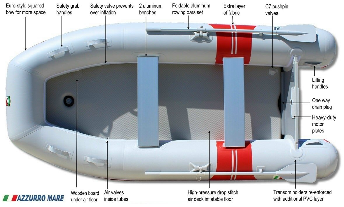 While Azzurro Mare boats offer various premium features that other competitive brands are lacking, we are still able to offer sale prices well below other comparable inflatable boat brands. And we back it all with a 5 Years Manufacturers Warranty!