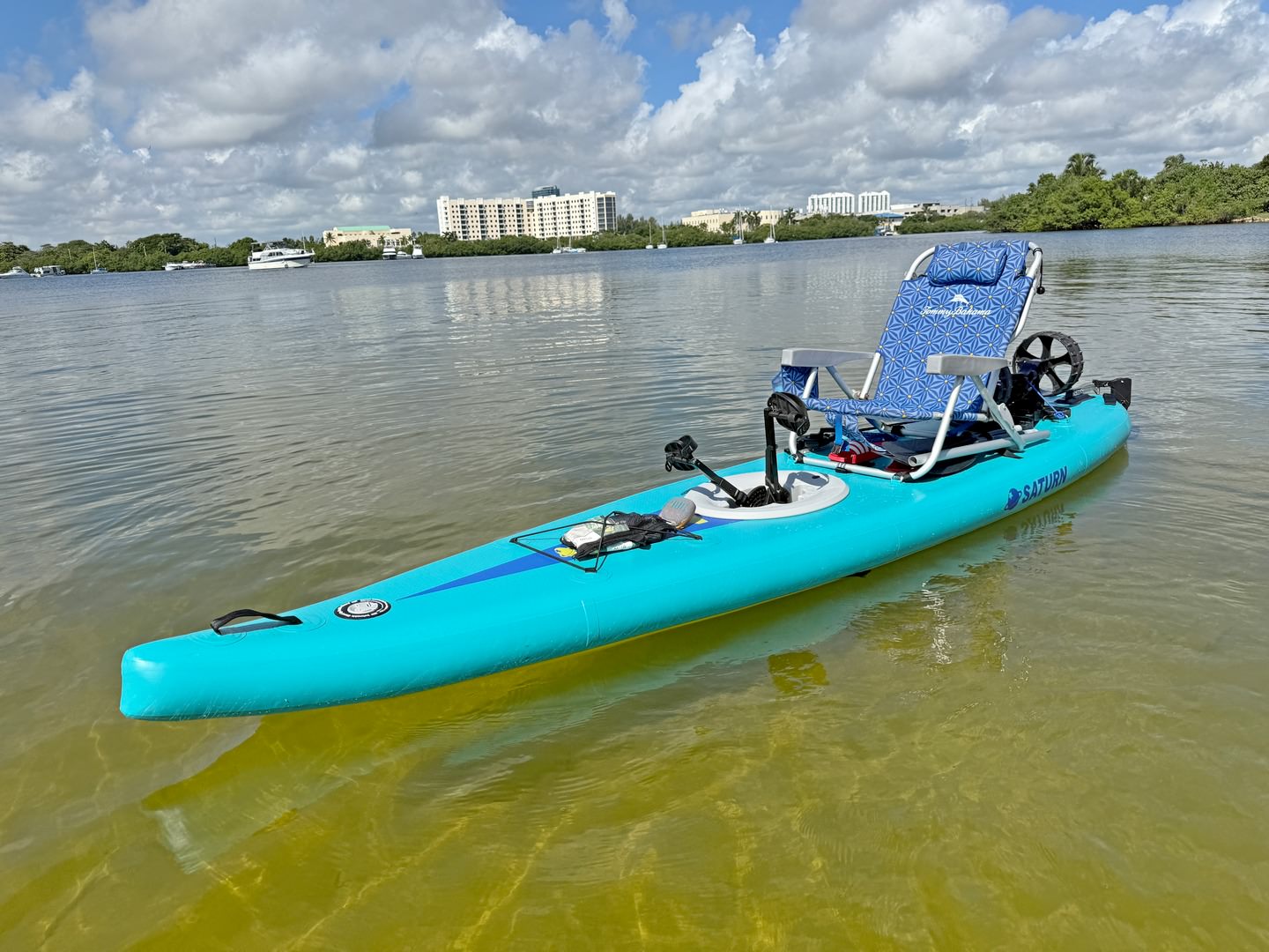 Turn every trip on the water into an adventure with the Saturn Inflatable Pedalboard — where speed, comfort, and fun meet.