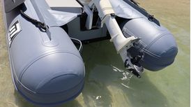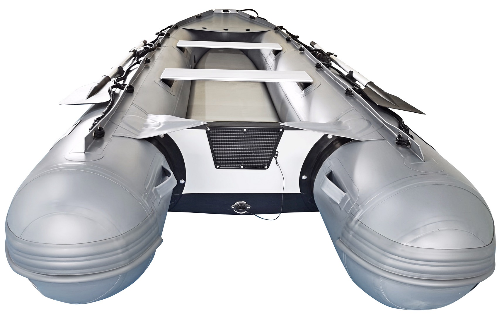 New attractive Euro-style squared shape bow adds more useful space in front. Round end tubes provide more buoyancy and support for heavier engines. Transom holders are re-enforced with stainless steel screws for additional durability.
