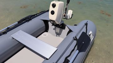 Note: Specifications and accessories are subject to change without notice. Max O/B Motor means: maximum power of outboard motor that can be safely used to plane the boat loaded to the maximum capacity at normal water surface conditions. Please exercise common sense and caution when using maximum motor capacity. Do not jump from wave to wave as new 4-stroke motors are much heavier then 2-stroke and provide extra strain on the transom. Under normal circumstances, with half the maximum persons/load capacity, 50% of maximum O/B power rating may be necessary to put the boat on plane.