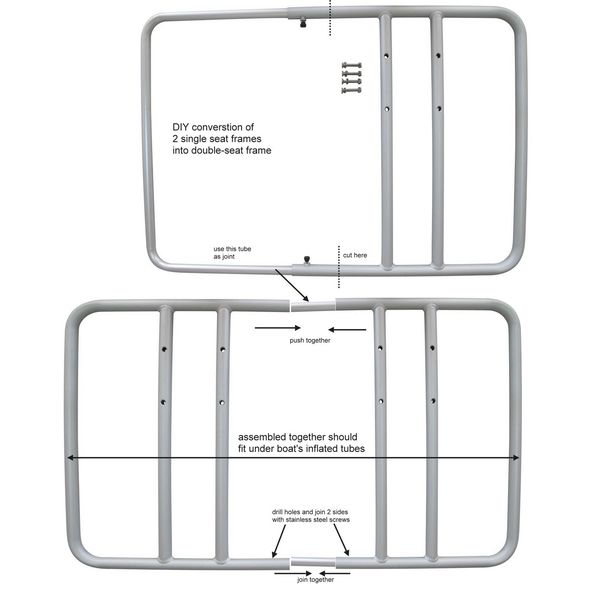 - You just need to assemble frame at proper distance once, and then lock it with thumb screws. Then you simply deflate one tube, push frame with attached seat inside, on top of the floor, and then re-inflate tube to keep frame in place. To remove frame from boat, simply deflate one side of tube and pull frame out.