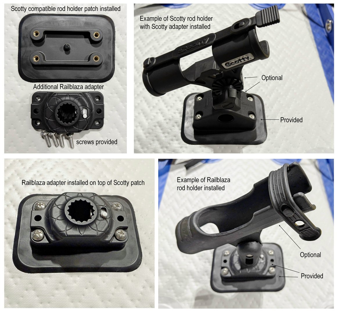 Scotty/Railblaza compatible mounts for rod holder or other accessories.