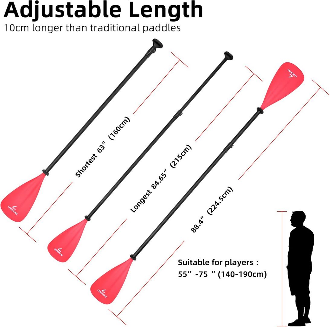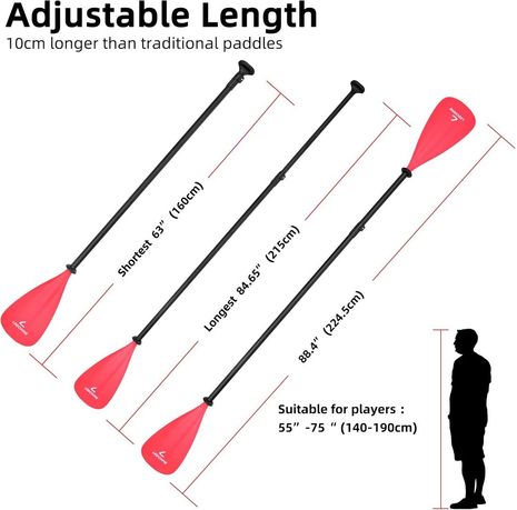• SUP paddle length: adjustable from 63 to 84.65 inches (160 to 215 cm)