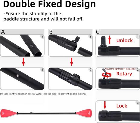 The anti-twist clamp allows you to adjust the paddle quickly with a simple rotation. The quick-pin system lets you snap the paddle together in seconds.