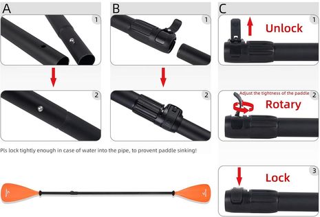 • Clamp screw keeps water out and ensures the paddle stays floating