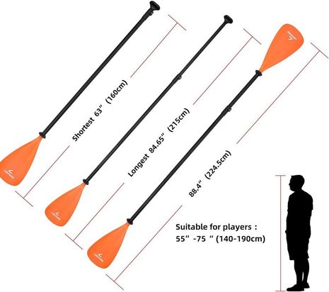 • SUP paddle length: adjustable from 63 to 84.65 inches (160 to 215 cm)